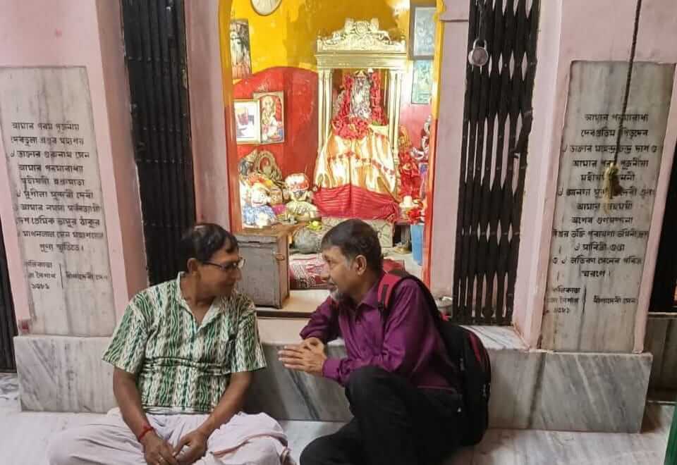 কথা বললাম মন্দিরের বর্তমান অধিকারী কল্লোল ভট্টাচার্যের সঙ্গে। তাঁকে জানালাম, বহু আগে আপনাদের এই মন্দির নিয়ে কাগজে লিখেছিলাম। উনি আগ্রহ দেখালেন। নামের কার্ড দিয়ে বললাম, “মাঝে মাঝে তো ইউটিউবাররাও আসছেন!” উনি বললেন, “হ্যাঁ। অতীতের কথা শুনেছি। তবে, আমরা ১৯৩০ থেকে এখানে আছি। রোজ বেলা সাড়ে বারোটা থেকে বিকেল পর্যন্ত মন্দিরের ফটক বন্ধ থাকে। মূল কালীপুজোয় খুব ভিড় হয়।”